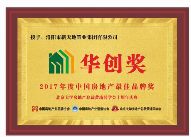 作為洛陽地產(chǎn)行業(yè)的領(lǐng)軍人物,新天地集團(tuán)不負(fù)眾望,憑借雄厚的品牌實(shí)力和***產(chǎn)品的成功塑造,以及董事長張夢留的個(gè)人魅力,斬獲“華創(chuàng)獎(jiǎng)?2017年度中國房地產(chǎn)***佳品牌獎(jiǎng)”和“華創(chuàng)獎(jiǎng)?2017年度中國房地產(chǎn)***企業(yè)家獎(jiǎng)”雙桂冠。